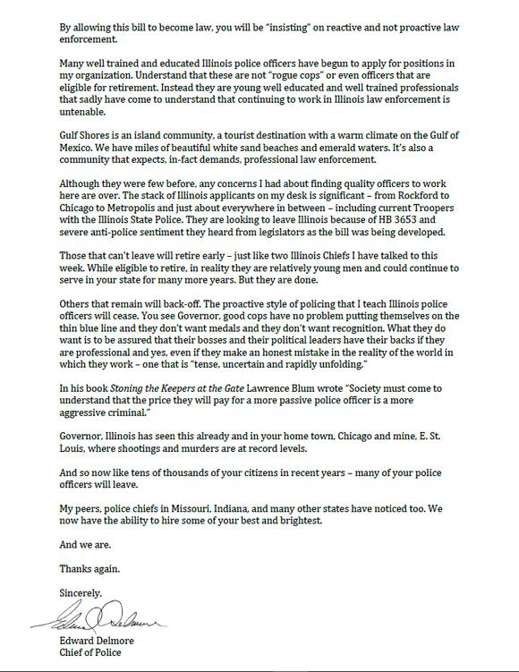 Gulf Shores Police Chief Writes Open Letter To Pritzker On Hb 3653
